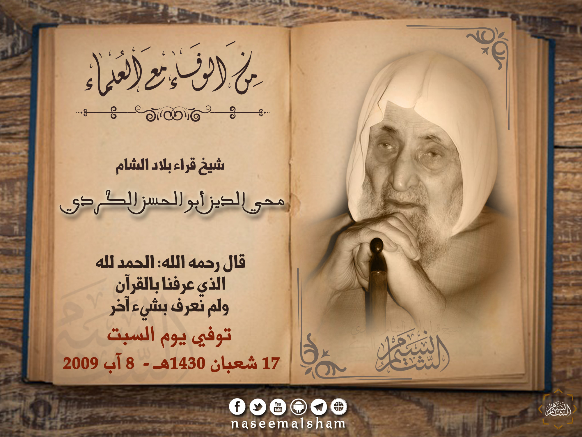محاضرة ألقاها فضيلة الشيخ محمد نعيم العرقسوسي في مسجد التوبة في إحدى جلسات مجالس الوفاء والثبات على العهد