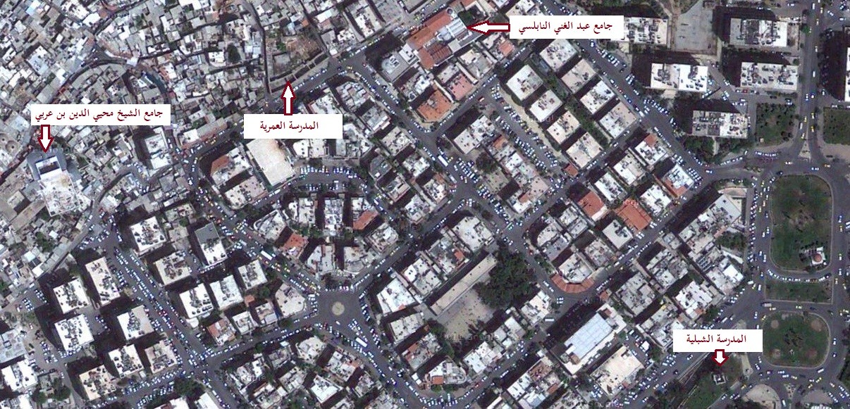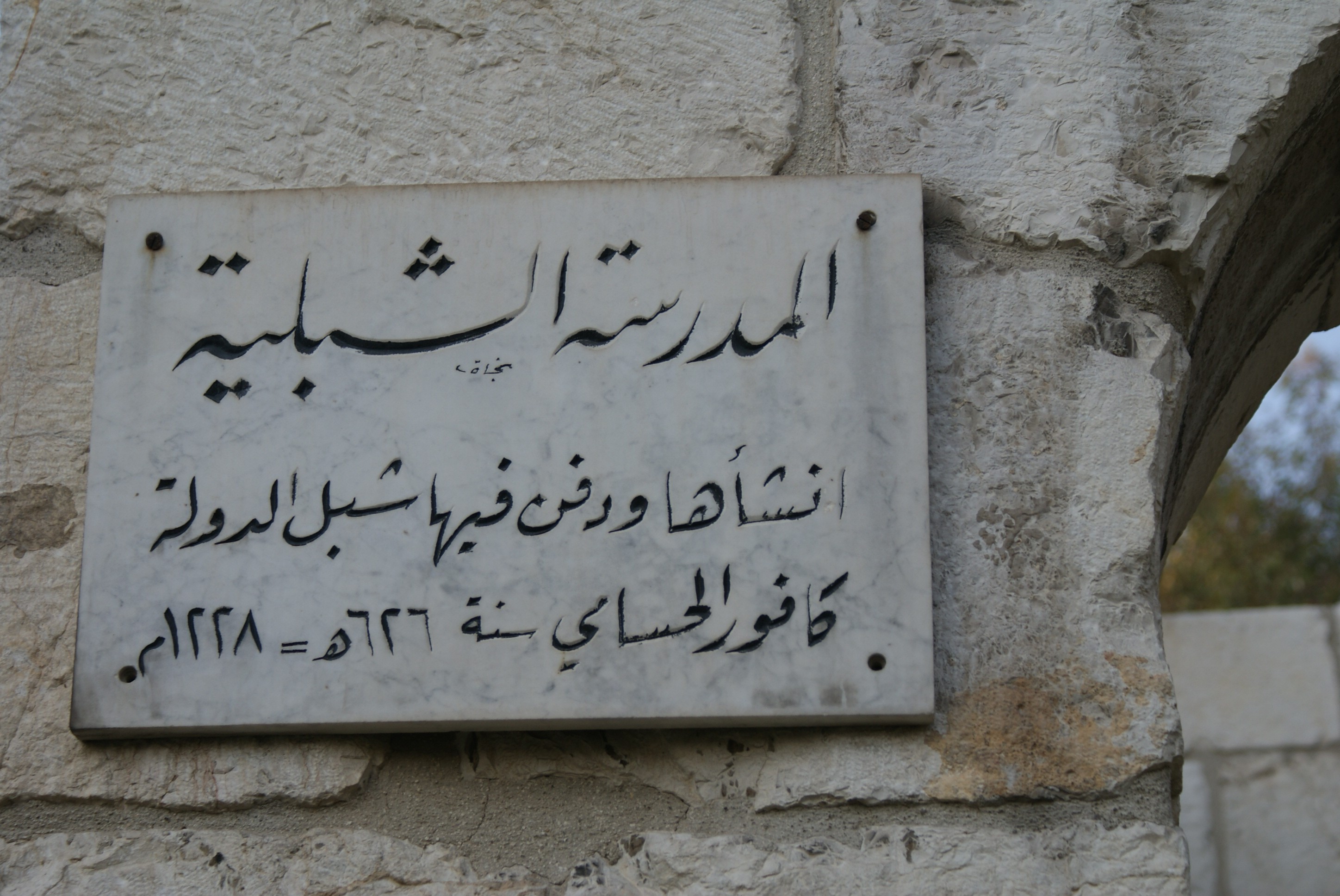 أخبرنا شيخنا الفاضل عبد القادر بن بدران رحمه الله في منادمة الأطلال ومسامرة الخيال فقال: قال ابن شداد في كلامه على المدارس الخارجة عن البلد المدرسة الشبلية الحسامية بسفح جبل قاسيون بالقرب من جسر ثورا.