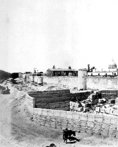 وشغلت أبنيتها وأزقتها الجانب العربي من المدينة لارتفاعها، وكانت تسمى "دار ميسيق"، أي الدار المسقيّة، ودلت الحفريات بعدم وجود أي مظهر عمراني في مساكنها وشوارعها خارج هذه المنطقة، وشغل معبد "حدد" القسم الجنوبي للملكة، أي موقع الجامع، والقصر الملكي يقع إلى غربي المعبد، (عُثر على لوح حجري ضخم يعود لهذا العهد في أساسيات الجدار الشمالي للجامع).