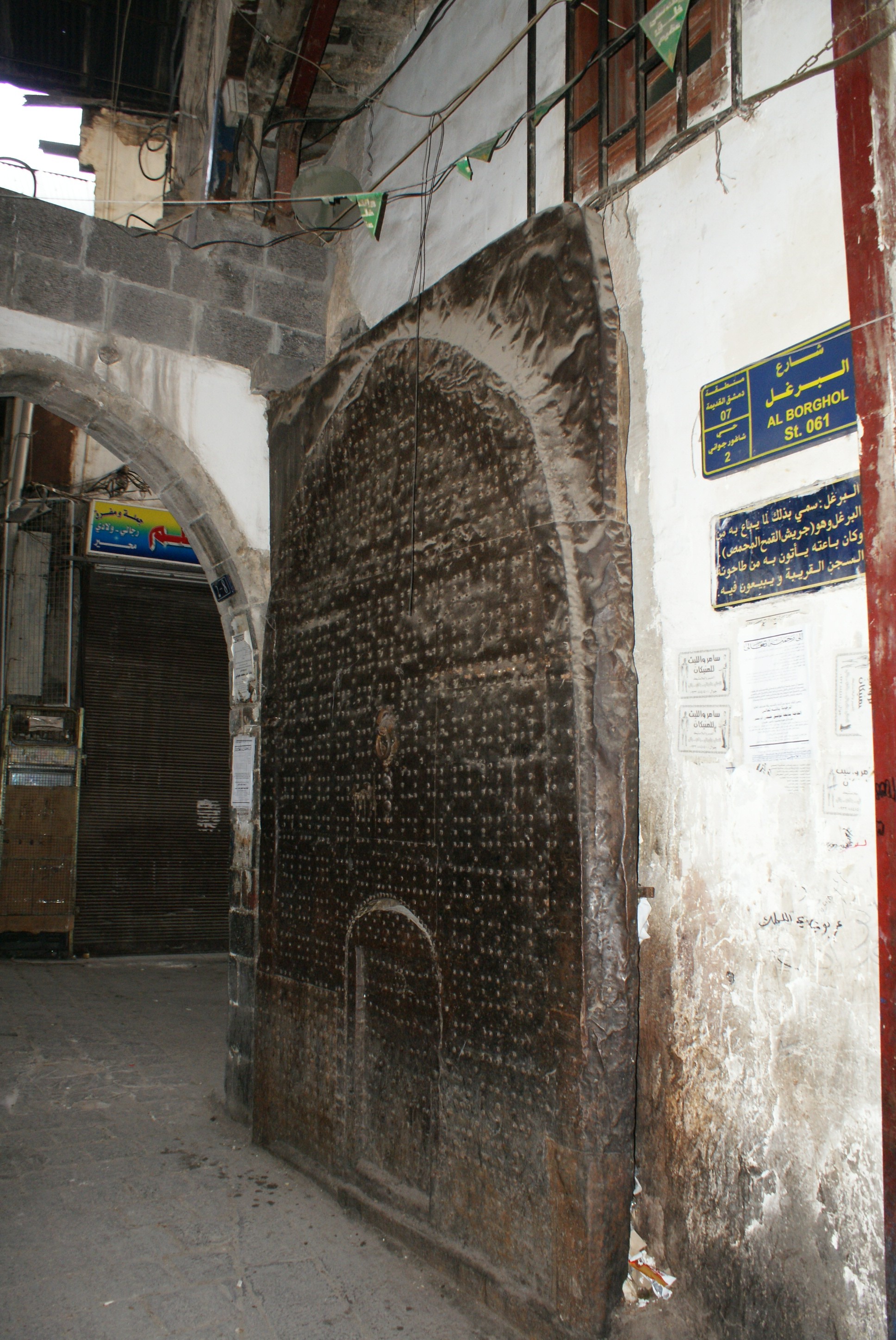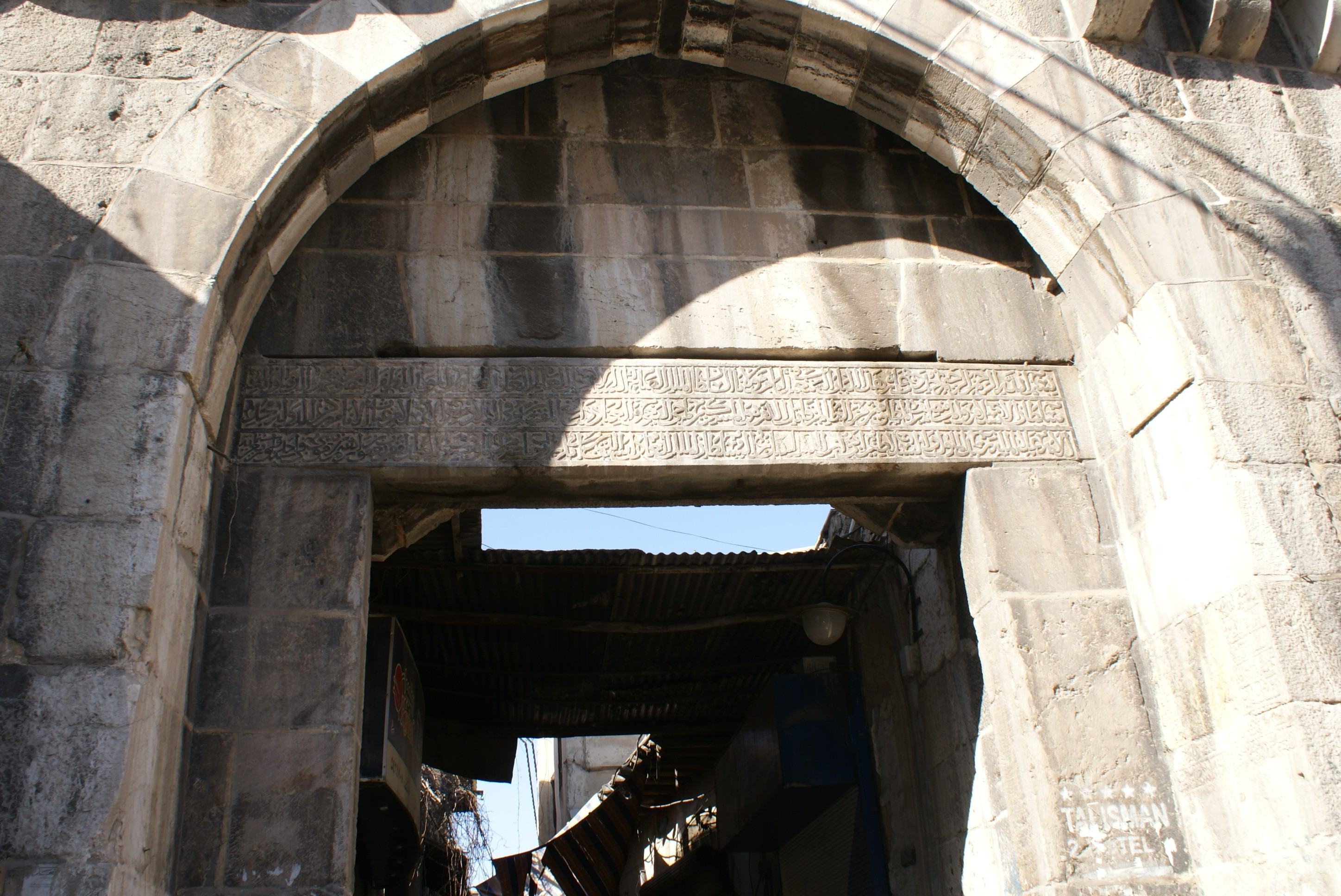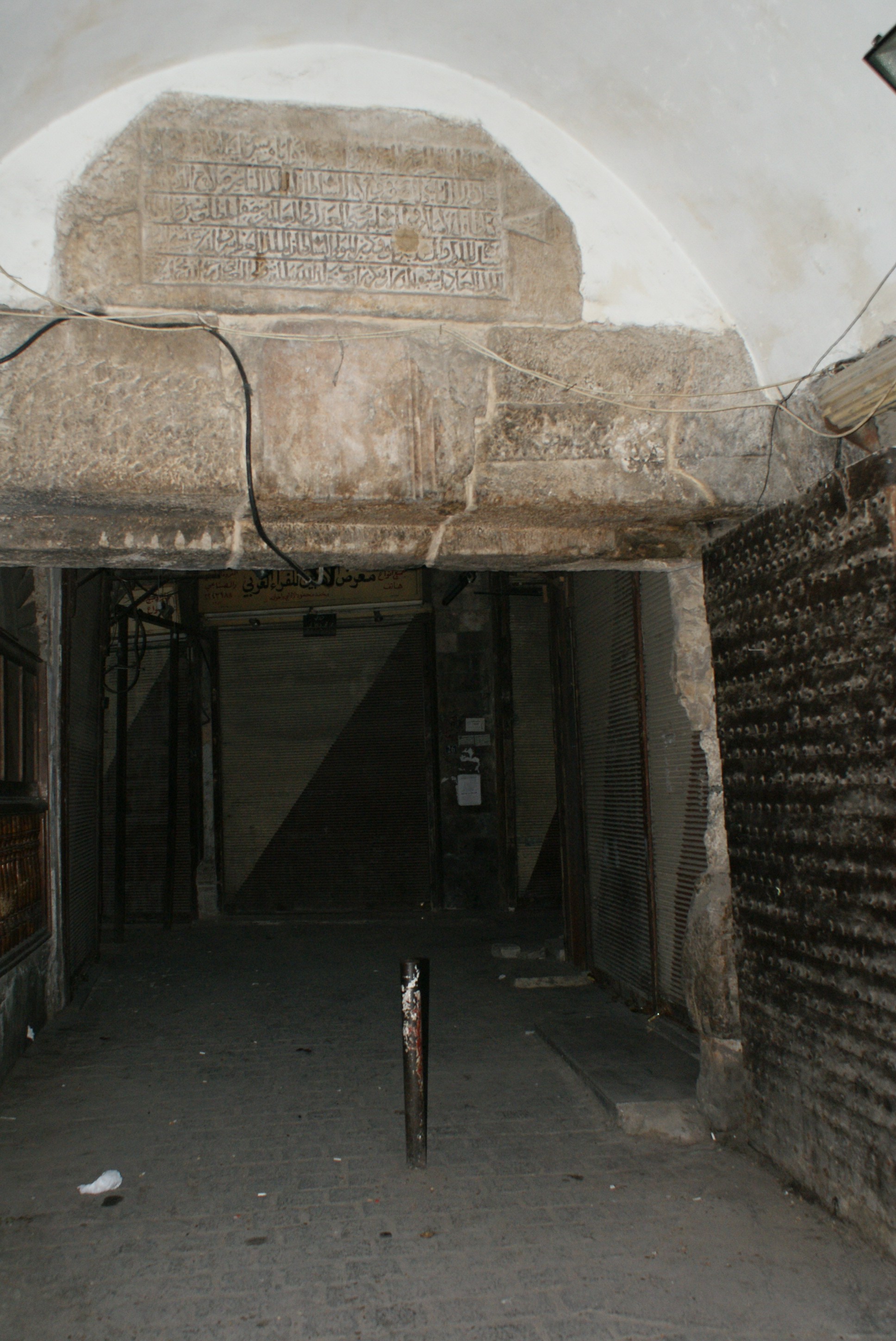 وهو نص كتابي داخل الباب يحوي مرسوم صادر عن السلطان نور الدين الزنكي عام 551هـ/1156م يتعلق بإلغاء الرسوم المفروضة على التجار المغادرين والعائدين من العراق: