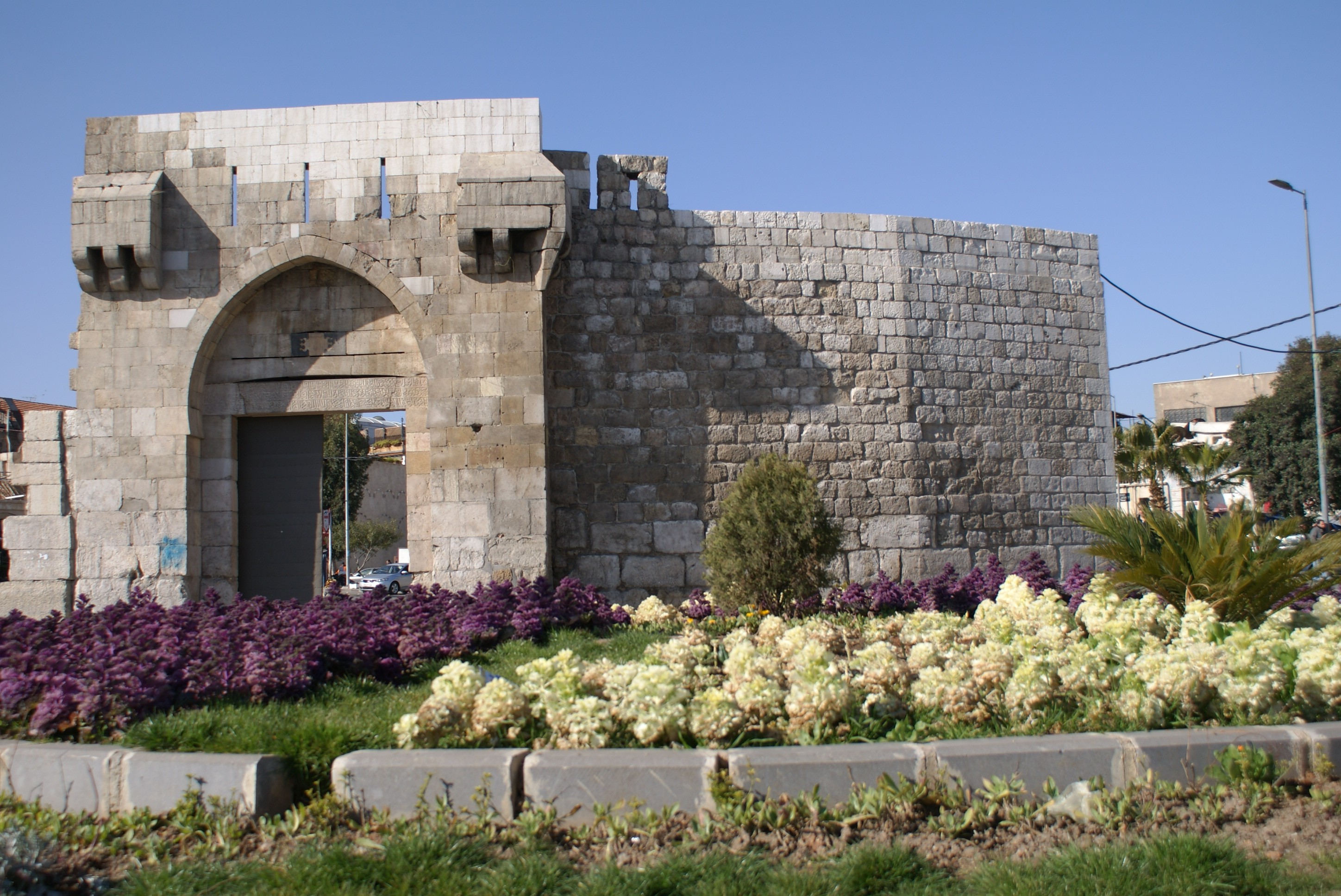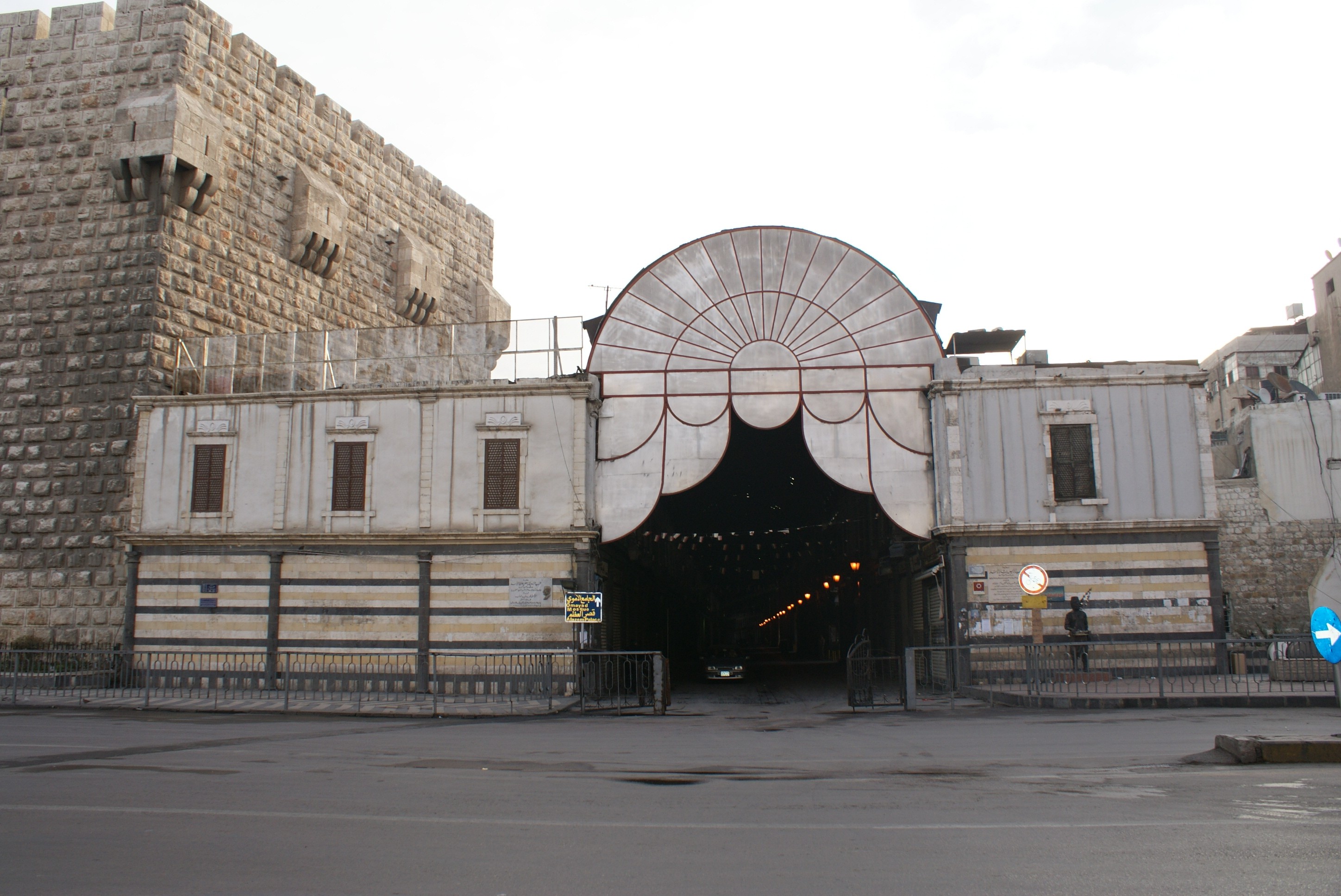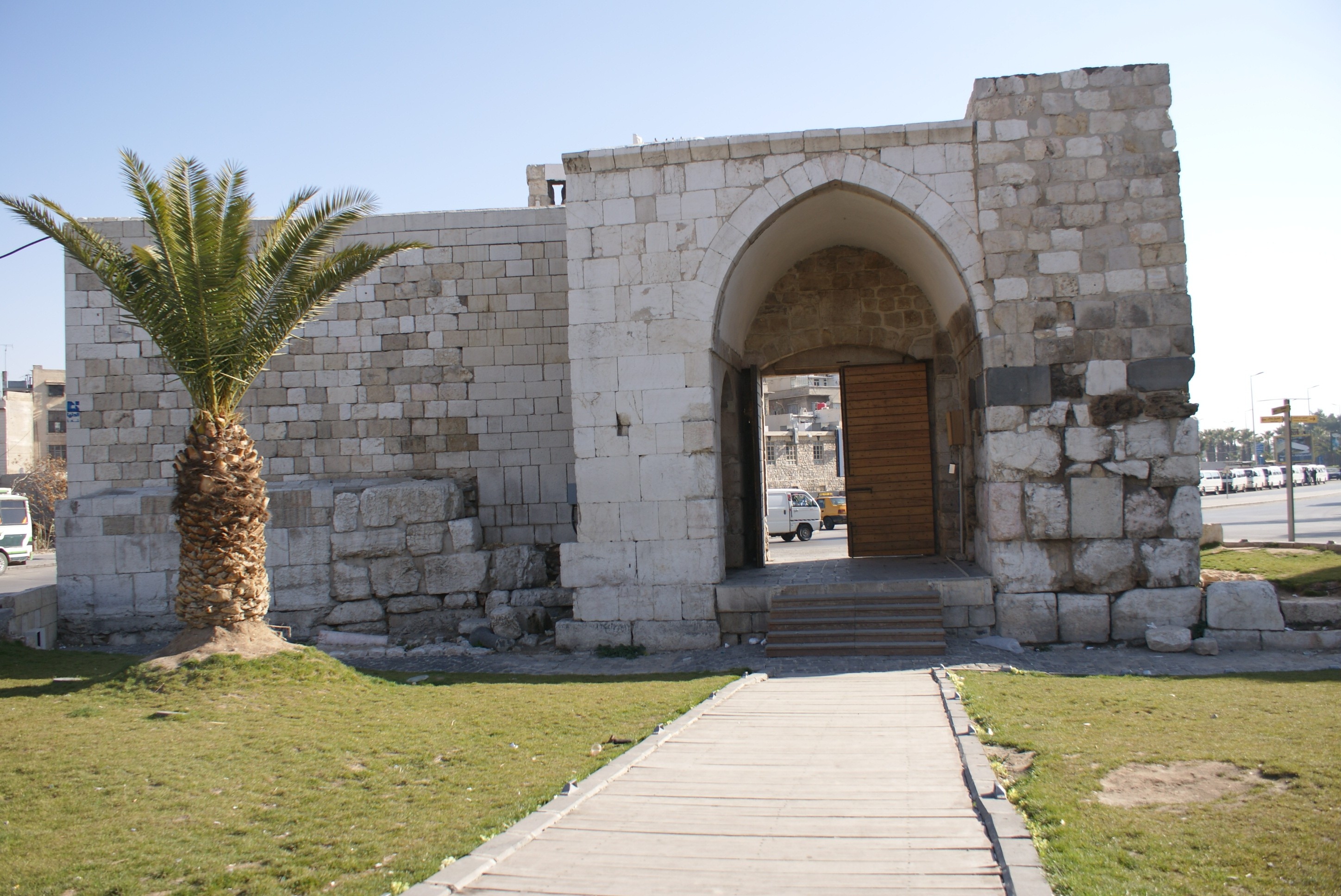 | الشرقي | روماني | موجود | الجامع أزيل وبقيت المئذنة | غير موجود وأزيلت في أواخر القرن التاسع عشر | باب ثلاثي سدت البوابتان الوسطى والجنوبية من الباب وأبقي على البوابة الشمالية (في عهد نور الدين على الأرجح). في القرن العشرين تم إعادة افتتاح البوابتين الوسطى والجنوبية بعد ترميم الباب. |