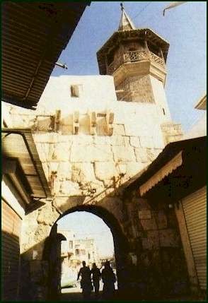 وفي دمشق عاش اليونان مع الآراميين جنباً إلى جنب، وأصبح لليونان جالية كبيرة، سكنت دمشق، ونتيجة هذا التمازج كانت الثقافة الهلنستية التي طبعت دمشق بطابعها عدة قرون، ولكن بمجيء الامبراطورية الرومانية، حظيت دمشق بتنظيم جديد، أحيطت بسور واسع مستطيل بني بالأحجار الضخمة، وزود بسبعة أبواب .