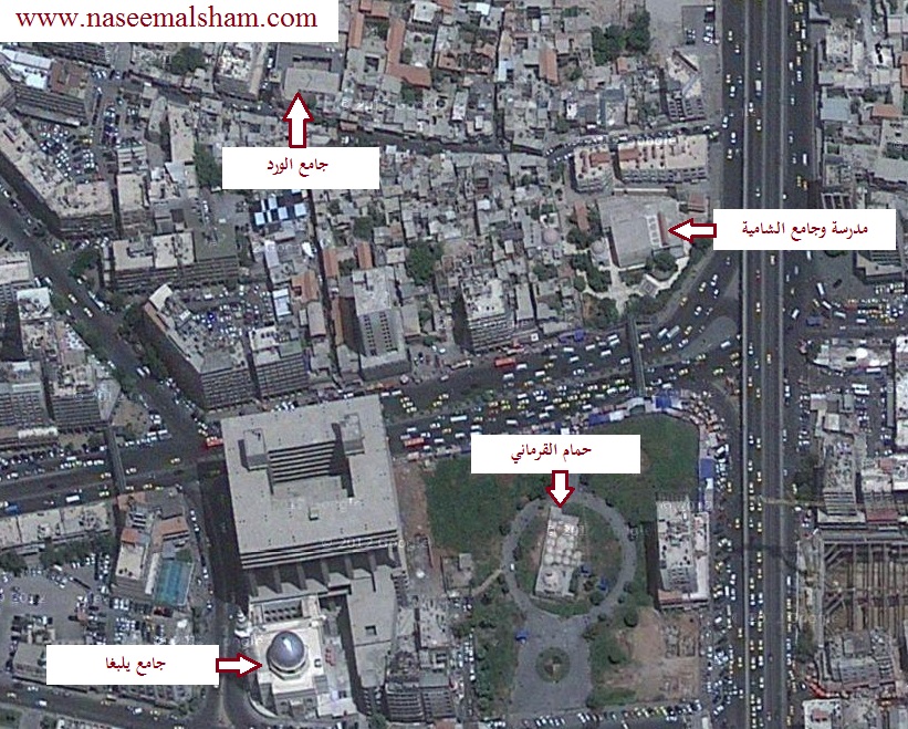 أقول: هذا المسجد تجده أيها السائح المسلم، يجمع بين الطريق المؤدي من بوابة طريق الصالحية وحتى المدرسة الشامية البرانية لست الشام، والموجودة بحي سوق ساروجة.