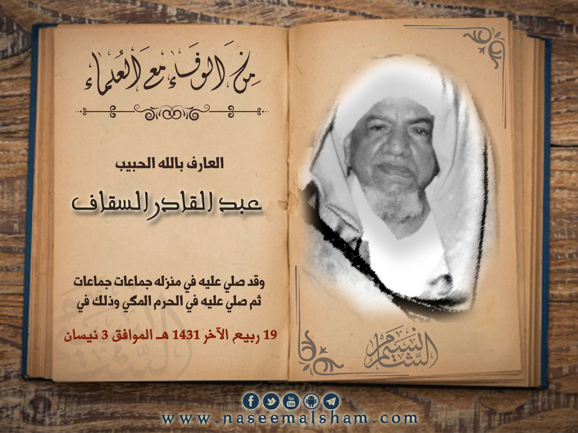 ثم سمعت القصة من سيدي الحبيب عمر بن محمد بن سالم بن حفيظ – أمتع الله به المسلمين- في جامع التوبة في دمشق عندما ترجم للحبيب عبد القادر ترجمة مفعمة بأخباره وأحواله تأثر لسماعها المسجد الذي غصّ بالناس، وكانت ليلة مشهودة!!