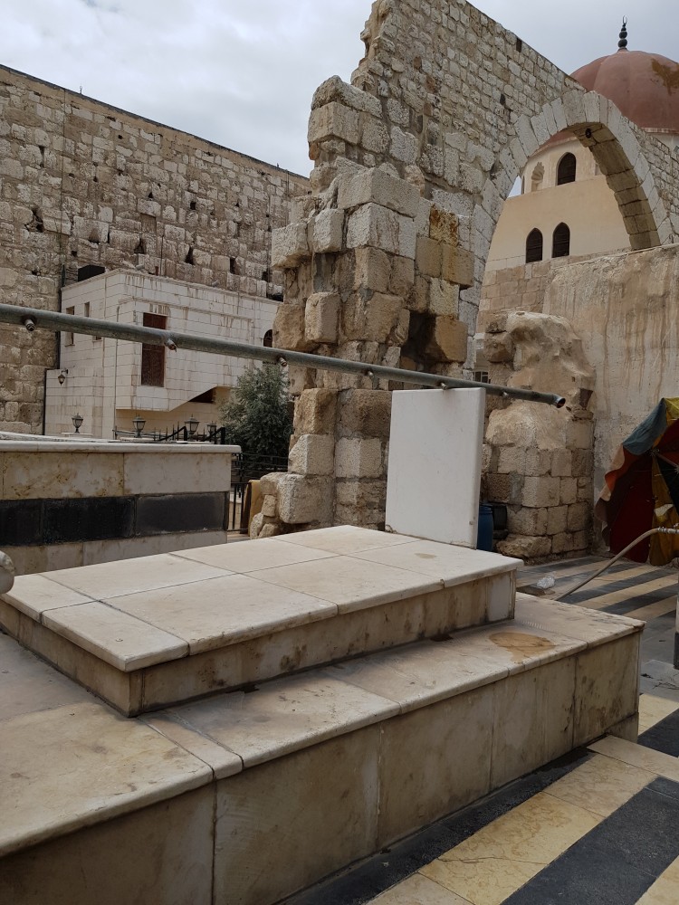 التربة الأشرفية كانت شمالي الجامع الأموي بين المدرسة العزيزية والمدرسة الجقمقية، وقد تهدمت وأصبح في مكانها مؤخرا ملجأ ضد الغارات الجوية ولا يزال القبر ظاهراً.