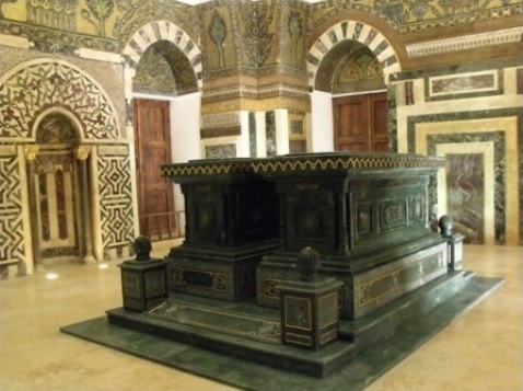 المدرسة الظاهرية، تحولت في العصر الحديث إلى مقر المكتبة الظاهرية، كانت داراً قديمة فحولت بعد وفاة الملك الظاهر بيبرس سنة 678 هجري، إلى مدرسة وشيدت في الزاوية الجنوبية الغربية منها تربة فخمة، لها قبة عالية نقل إليها جثمانه، ودفن معه ابنه الملك السعيد.