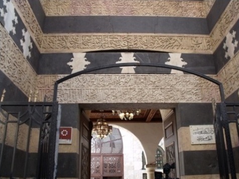 بين بابي الفرج والفراديس، بجوار الجامع شمالي باب البريد وقبلي الاقباليتين والجاروخية، وشرقي العادلية الكبرى، بابهما متواجهان بينهما الطريق، بنيت مكان دار العقيقي، وهي كانت دار أيوب والد صلاح الدين الأيوبي.