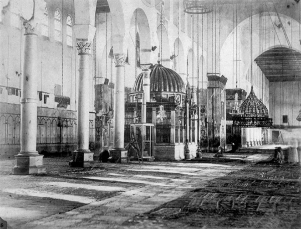 و نلمح في الحرم بناء صغيراً شرقي المحراب، هو ضريح النبي يحيى أو القديس يوحنا المعمدان، و يستمد الحرم نوره من نوافذ مفتوحة في جدرانه الشمالية الجنوبية، شبيهة بالقناطر العليا الموجودة في الأروقة.