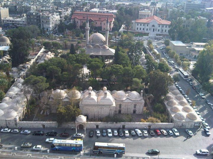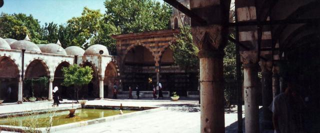 ولقد غطت الحدائق والأشجار جميع الفراغات بين الأبنية التي تتقدمها أروقة مسقوفة بقباب منخفضة وخلفها قاعات مسقوفة بقباب مماثلة أكثر ارتفاعاً يتخللها ذؤابات المداخن على شكل مآذن صغيرة، ويتناغم شكل القباب مع شكل الأقواس فوق أعمدة الأروقة في جميع الأبنية التي كانت تستعمل لإيواء المصلين والمتعلمين ولإطعامهم، وجميع الأبنية الواقعة في القسم الشمالي تؤكد هذه الوظائف التي ألغيت الآن.